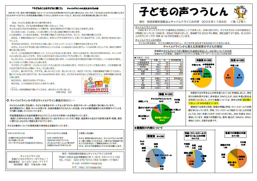 11月6日、「子どもの声つうしん」第12号(←リンク先はこちら)を発行しました。